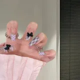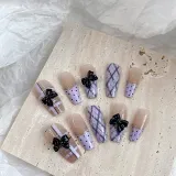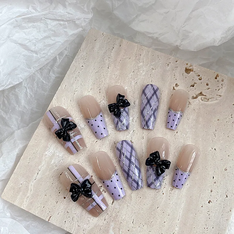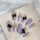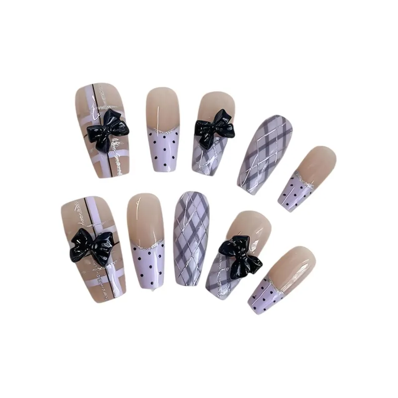 LOVEFIX Французский Невинно-соблазнительный Ромб Клетчатый 3D-эффект Бант Наклейки для Ногтей Накладные Ногти