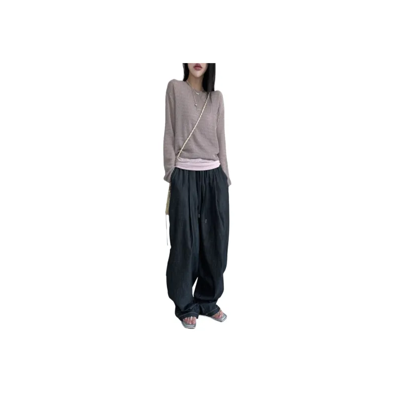 LOWEAR Не выцветание Стич Детали Maxi Деним Брюки Джинсы Женские