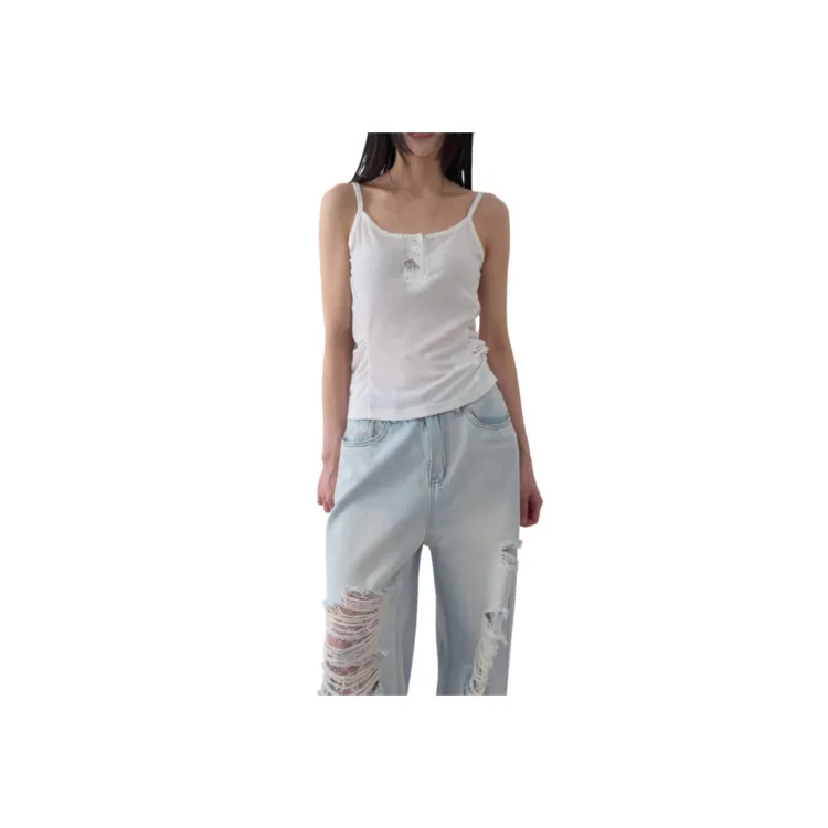 LOWEAR Боковая складка пуговица без рукавов топ на бретелях женский
