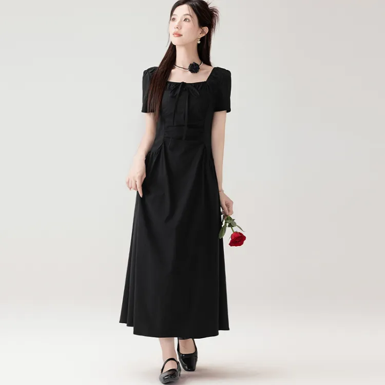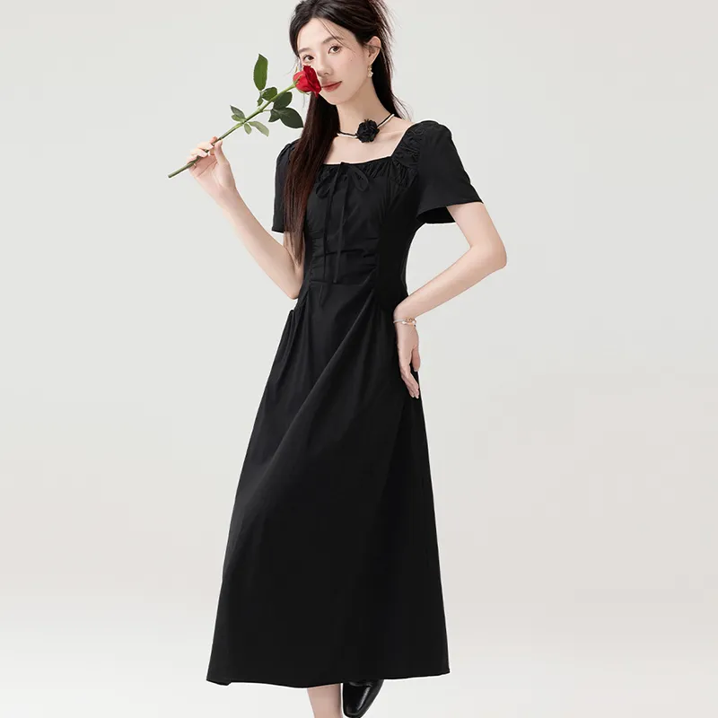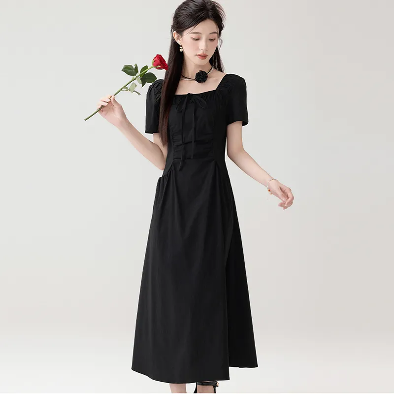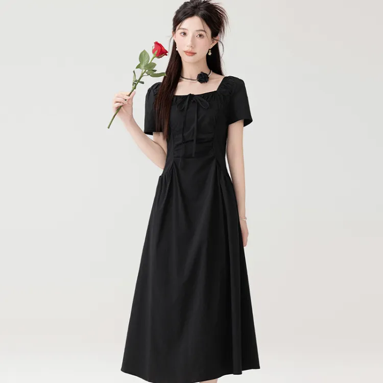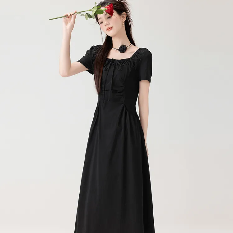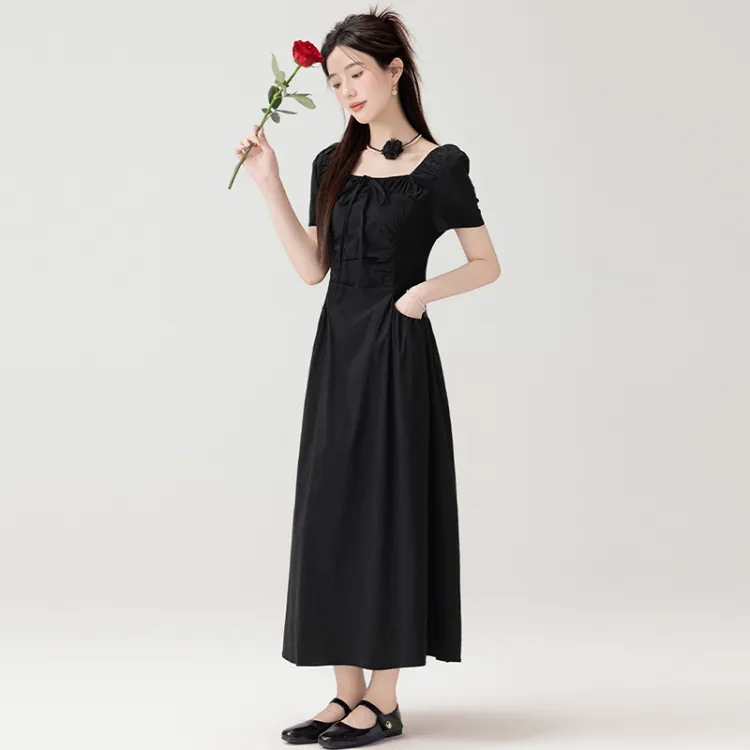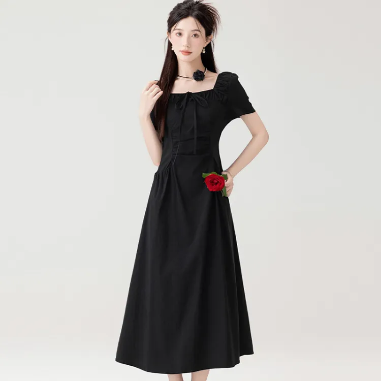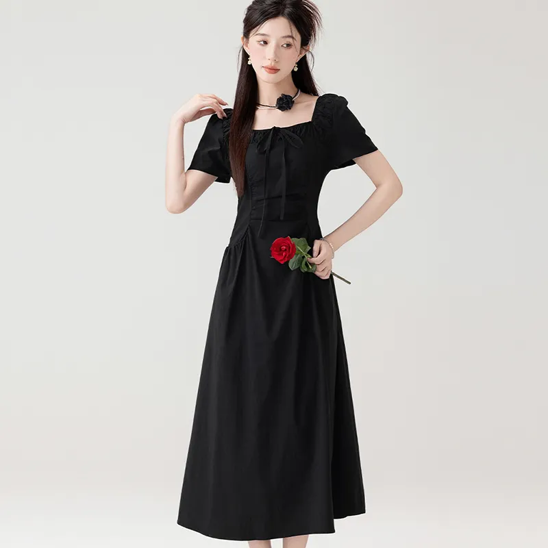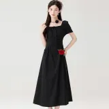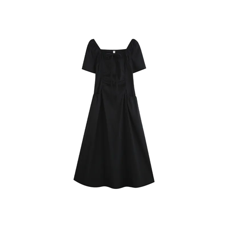 LSVE Короткий рукав Платье Женское Черное
