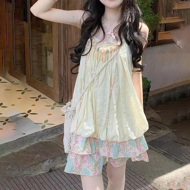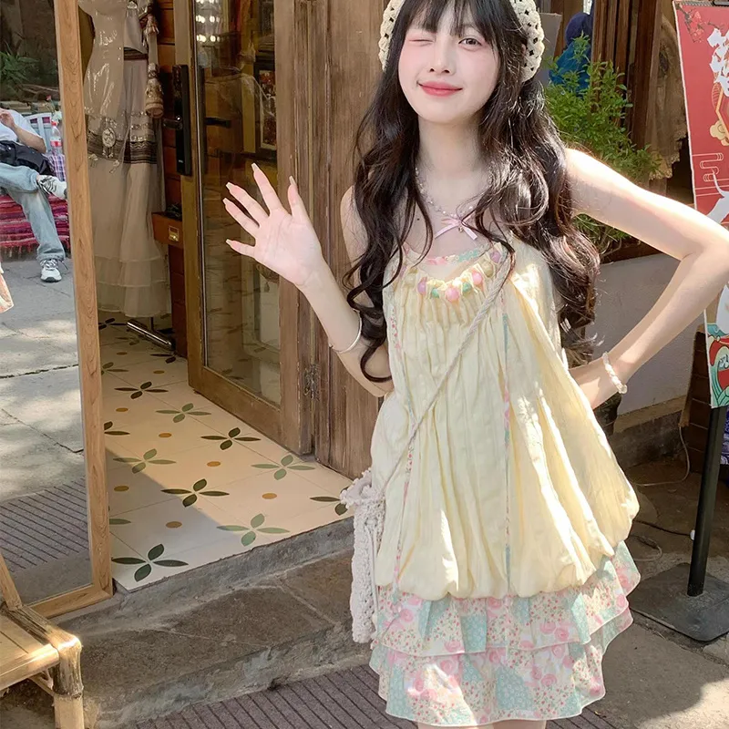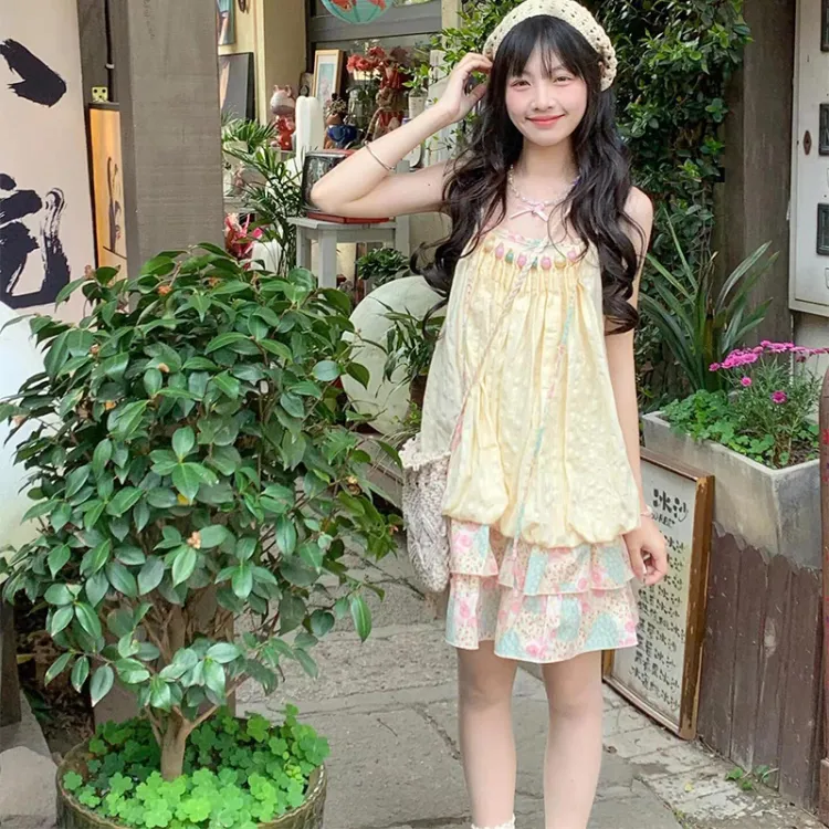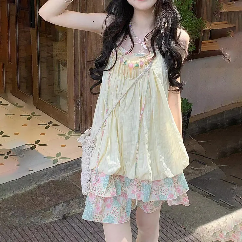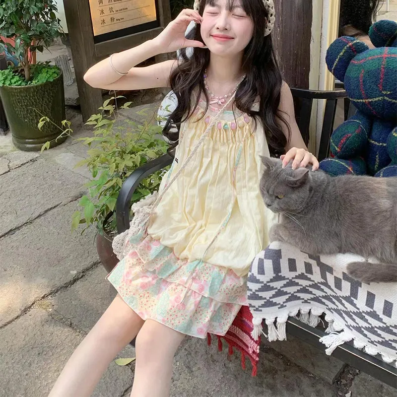LSVE Юбка-платье Женское Розовый Зеленый Цветочный