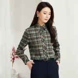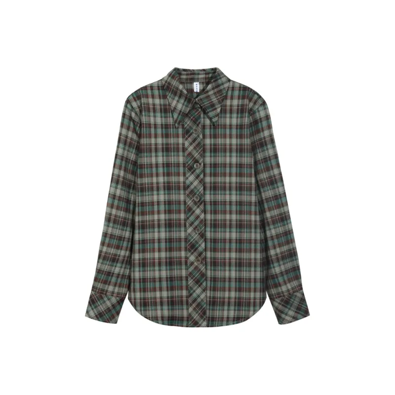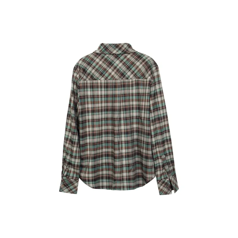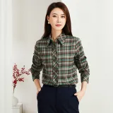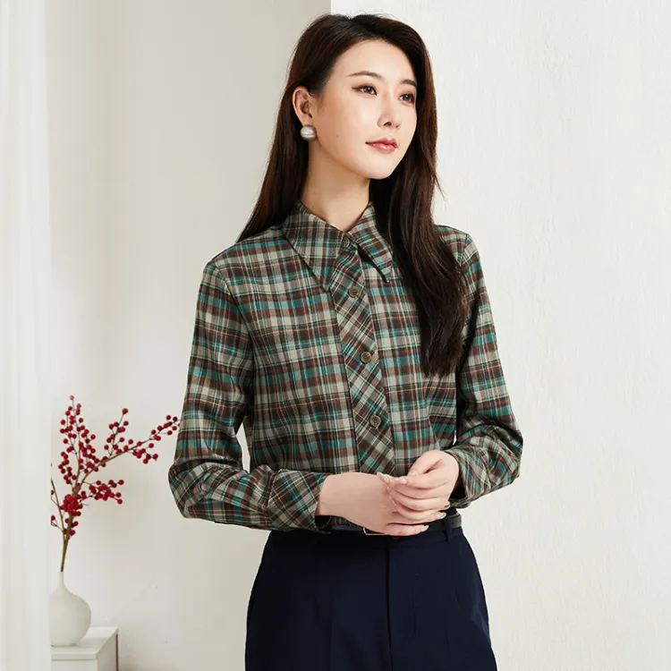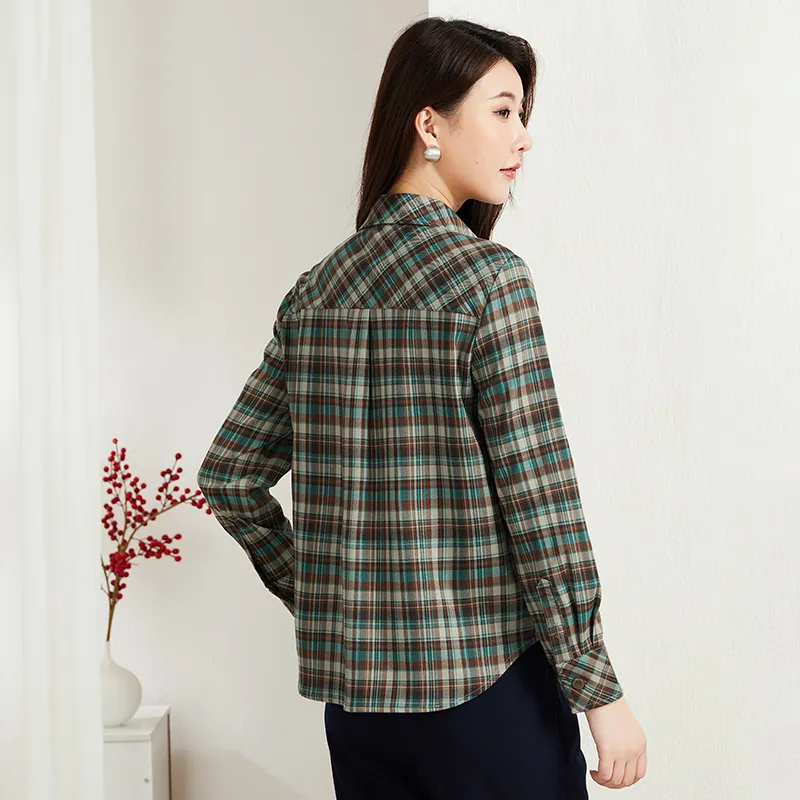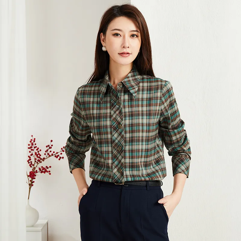 Lucybaily Рубашка Женская Зеленый Кофейный Клетка