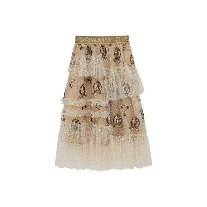 LULUALWAYS Экрю Женские Повседневные Длинные Юбки