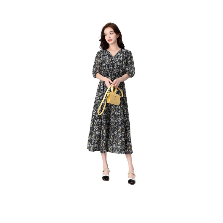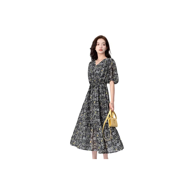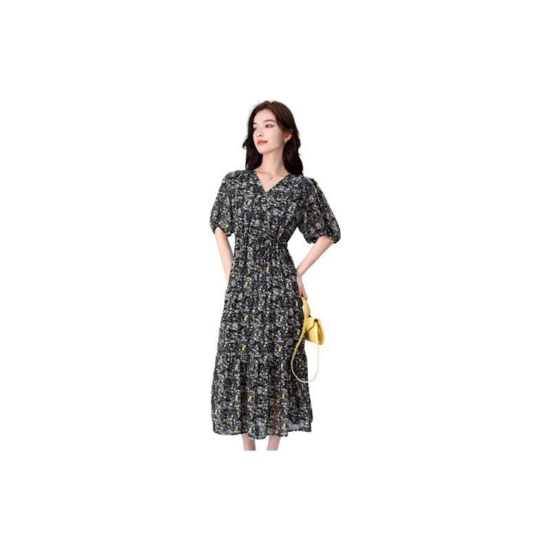LULUALWAYS Короткий рукав Платье Женское Черное