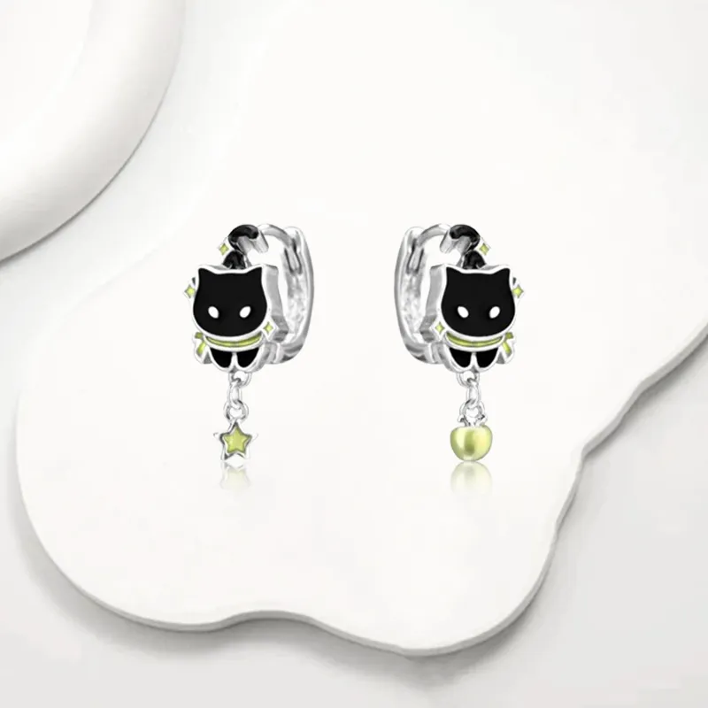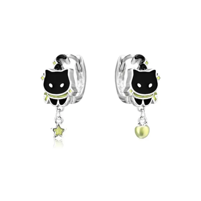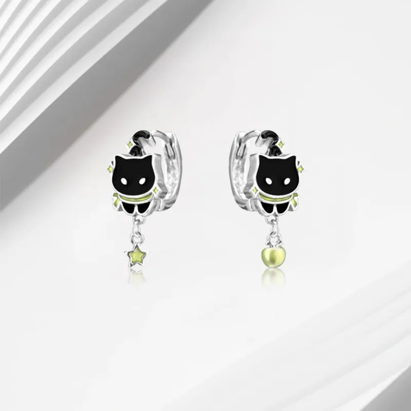 Стиль:Зеленое яблоко, котенок, серьги-кольца