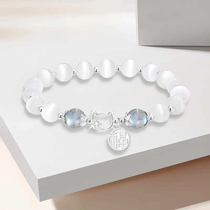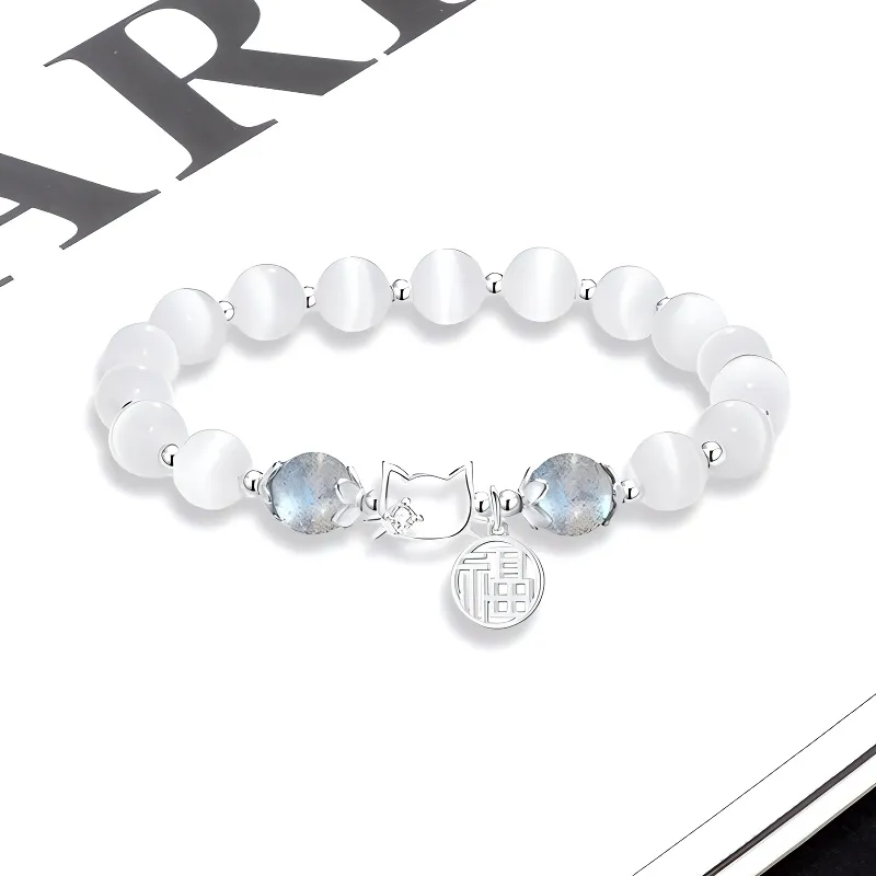 Стиль:Браслет с бусинами "Fortune Kitten" - белый
