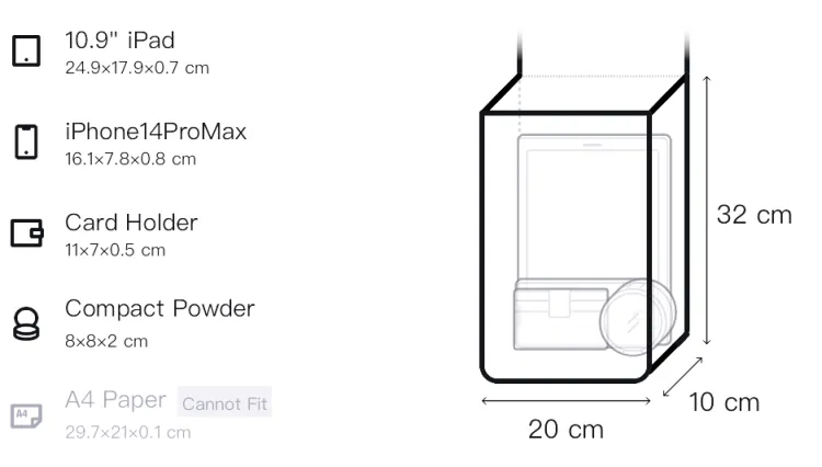 Д20*Ш10*В32см