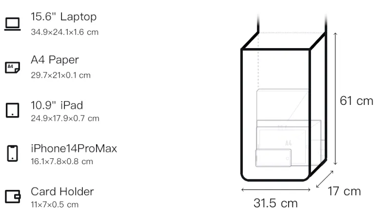 Д31,5*Ш17*В61см
