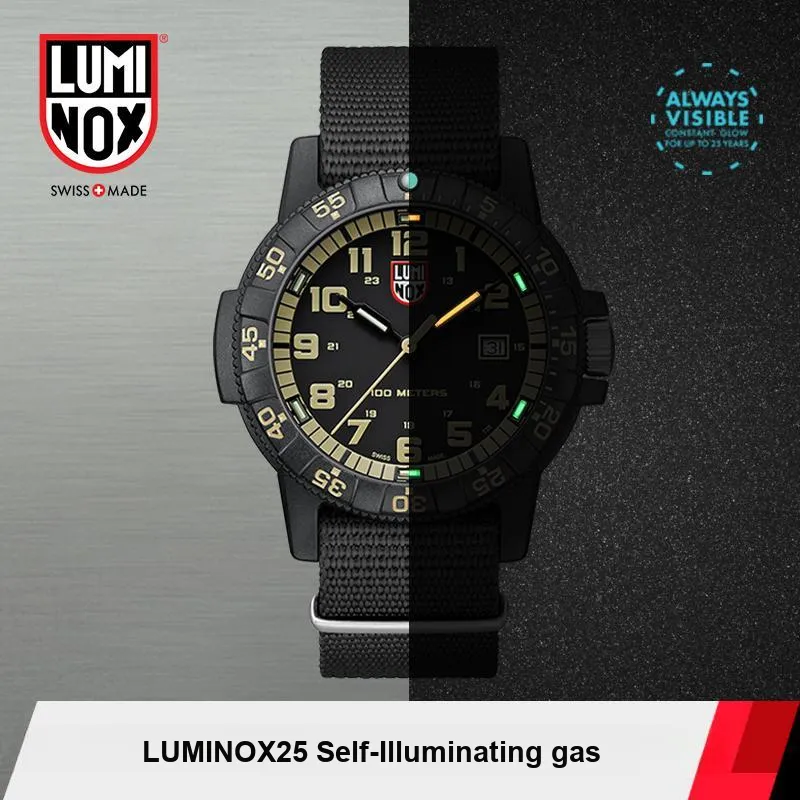 LUMINOX Кварцевый механизм Мужские часы Часы 44 мм Черный циферблат Углеродное волокно Чехол для часов Тканевый ремешок