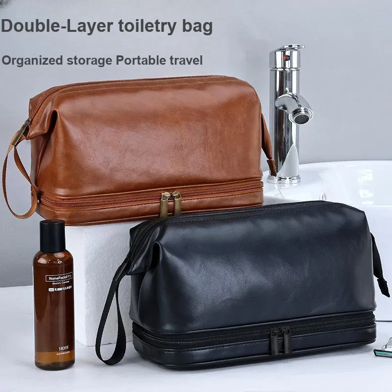 Luo Youte PU кожа двойной слой сумка для туалетных принадлежностей легкая британский стиль хорошая внешность сумка