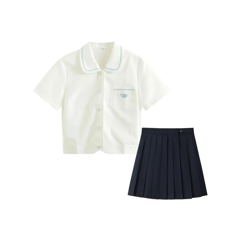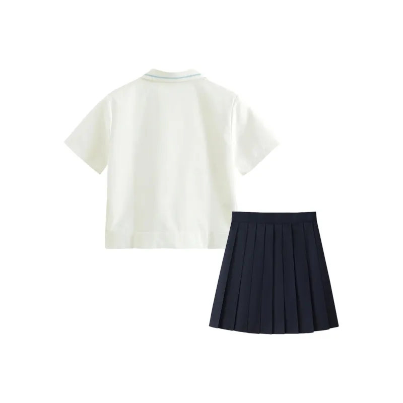 Cangxiachuan Короткий рукав + Темно-синяя короткая юбка (43 см)