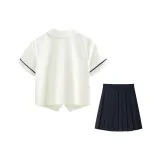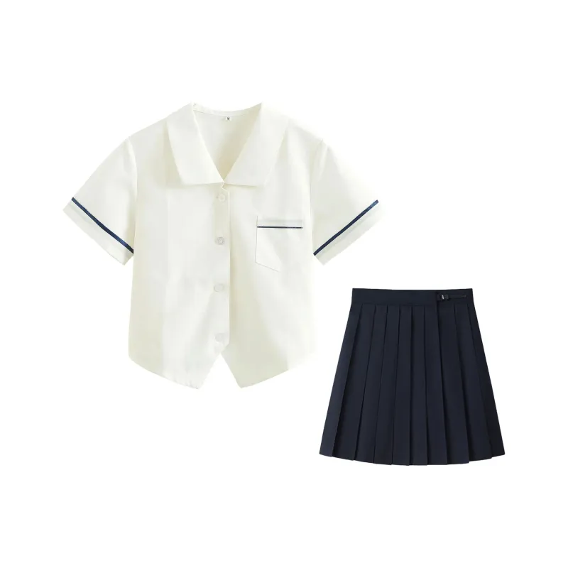 Деревянный короткий рукав + темно-синяя короткая юбка (39 см)