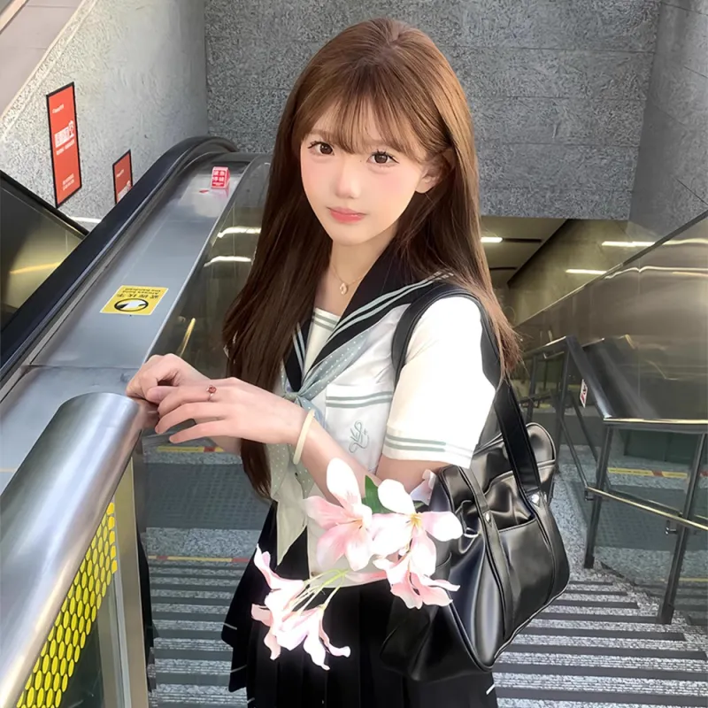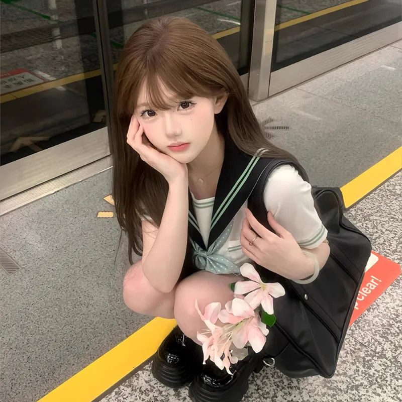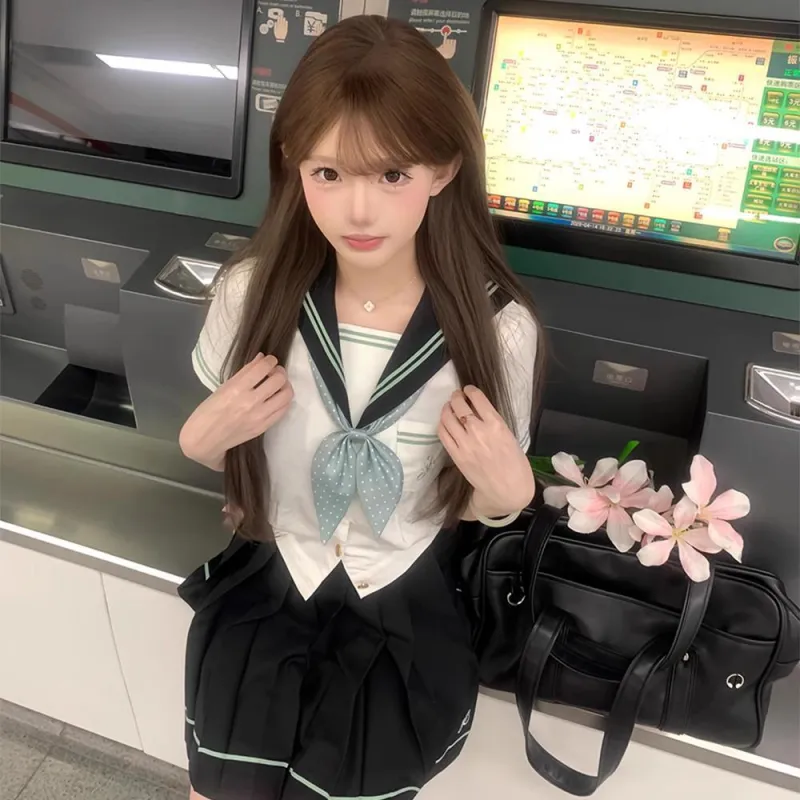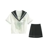 Цвет:Горный Зеленый Короткий Рукав + 39 см Короткая Юбка + Гороховый Узор Бант
