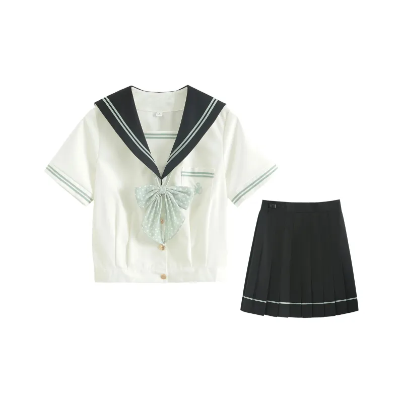 Горный Зеленый Короткий Рукав + 39 см Короткая Юбка + Гороховый Узор Бант