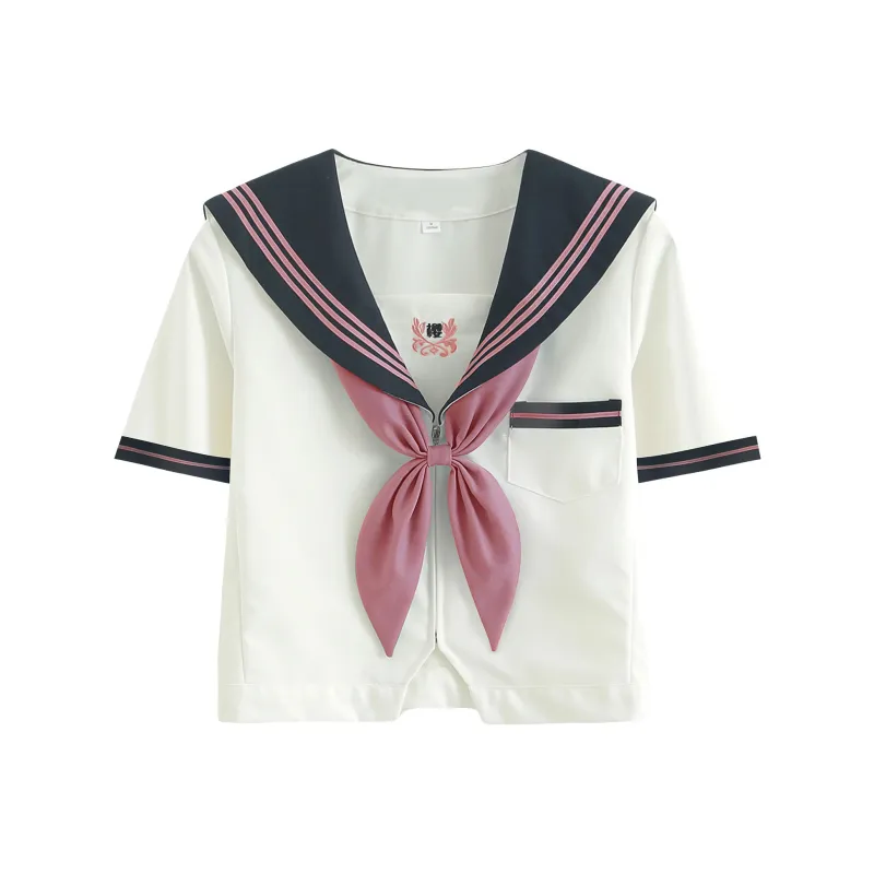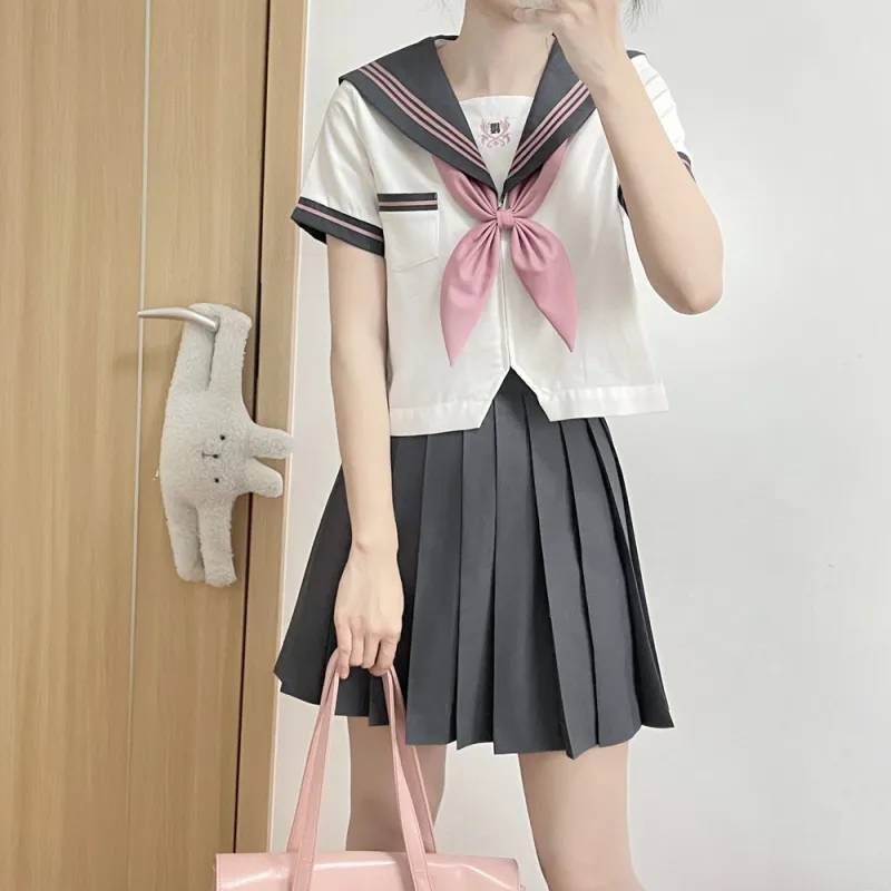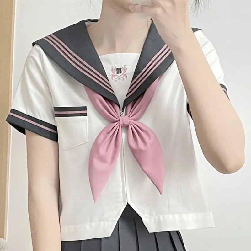 Luohua Candy Sakurai ART Серый Короткий рукав Одиночная пара + Золотая рыбка Узел Женская униформа