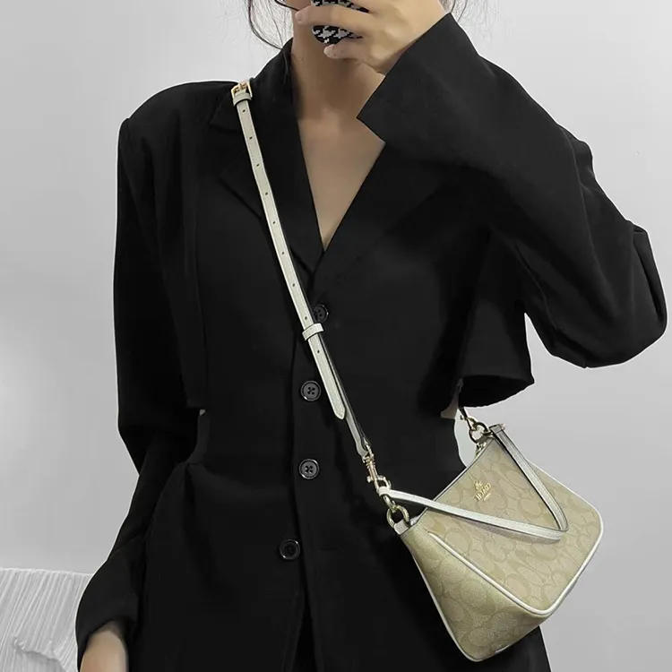 Молочно-чайный, кожаный ремешок, 67 см [Стиль с подмышечным позиционированием]