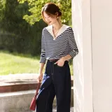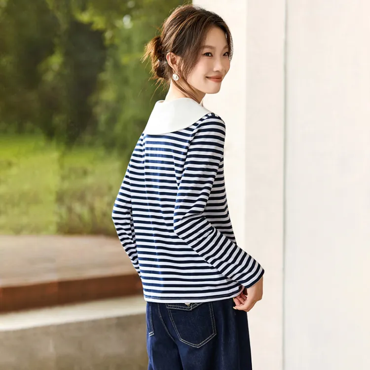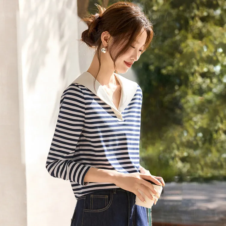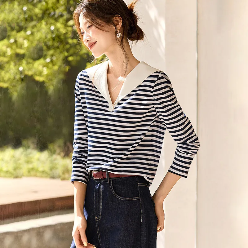 LUYOUYE Темно-синий синий экрю длинный рукав женские футболки