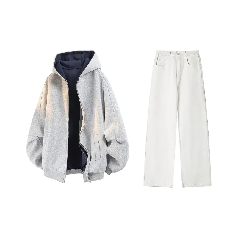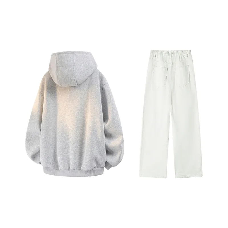 Комплект одежды (Серый топ + Белые джинсы)
