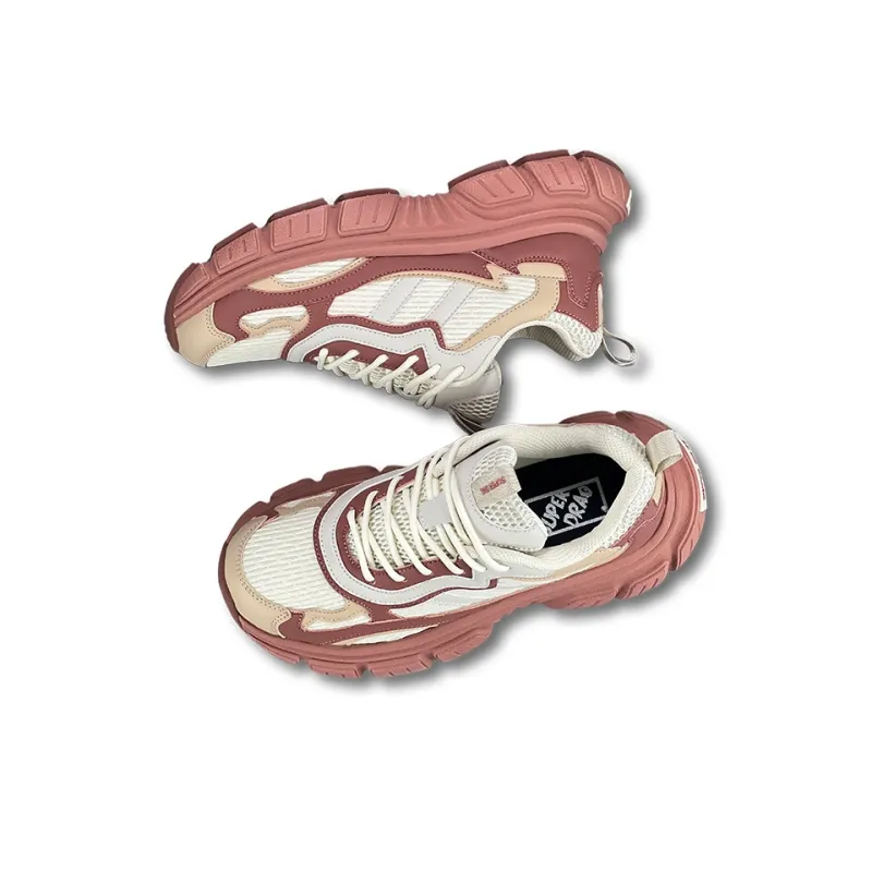 LuzaoT SUPER DRAG Амортизация Покрытие Устойчивость к истиранию Противоскользящий Низкий Топ Толстая подошва Кроссовки Женские Бежевый Розовый Красный