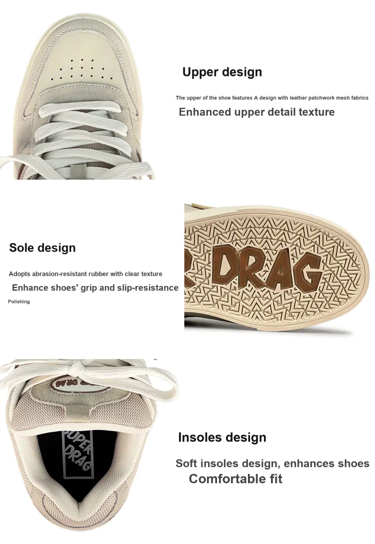 LuzaoT SUPER DRAG Низкие кроссовки для скейтбординга унисекс бежевые