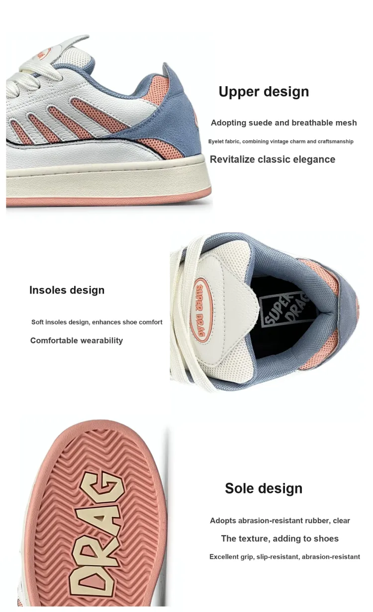 LuzaoT SUPER DRAG Пухлые туфли Низкий топ Кроссовки для скейтбординга Женские Винтажный синий