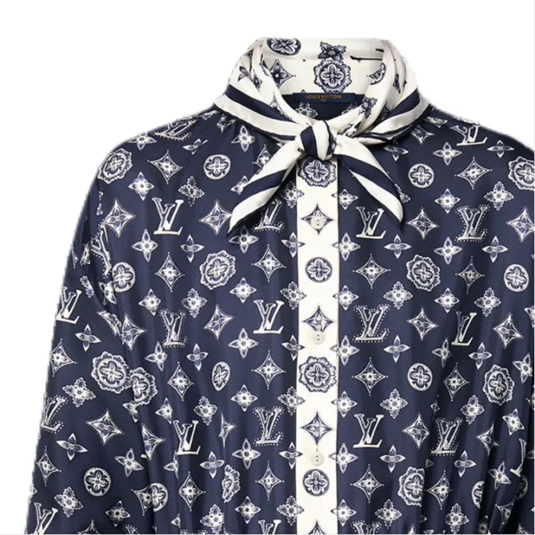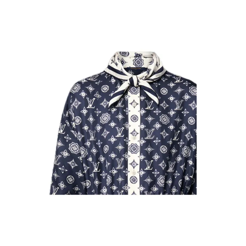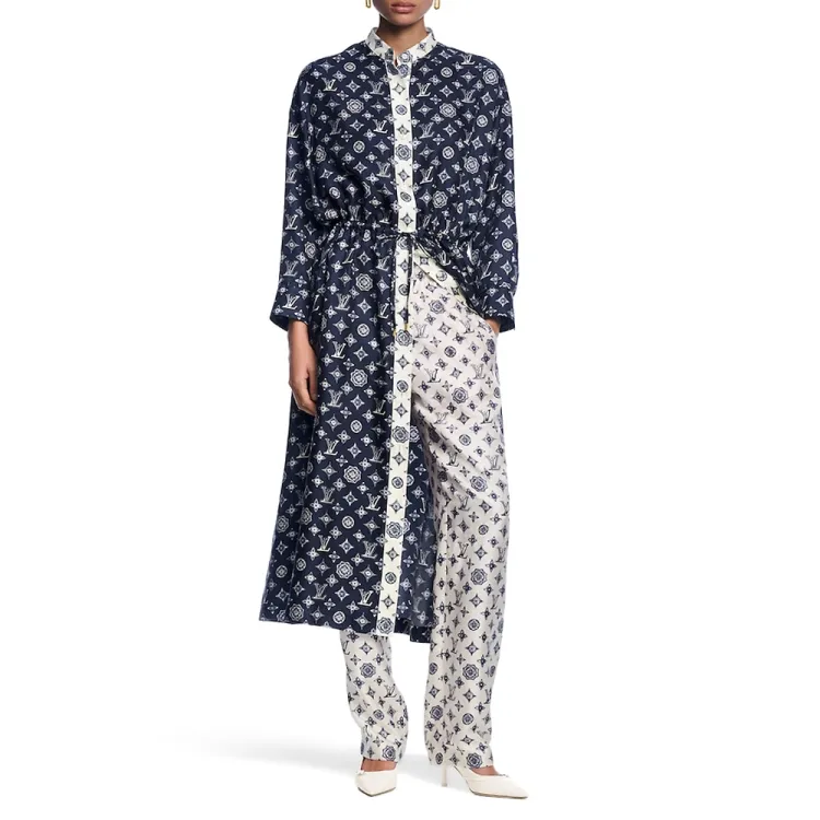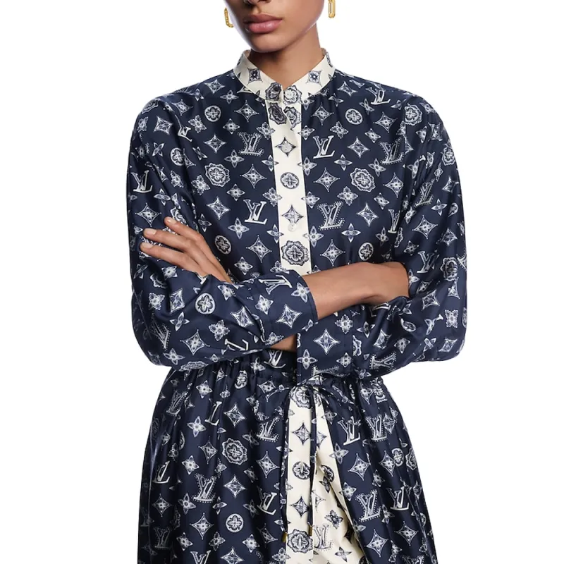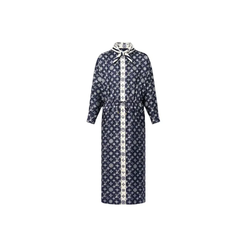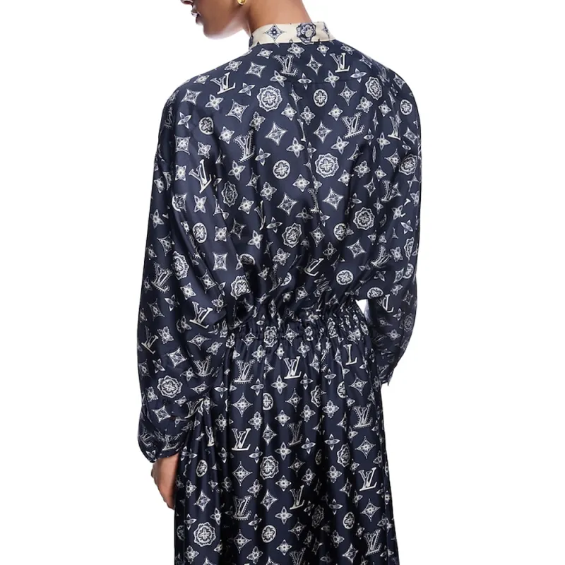 LOUIS VUITTON SS25 Длинное Платье с Длинными Рукавами Женское Синее
