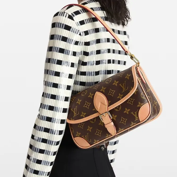 LOUIS VUITTON Diane Холст Покрытие Сумка через плечо Сумка-багет Портативная Сумка через плечо Сумка через плечо Маленькая Женская Коричневая