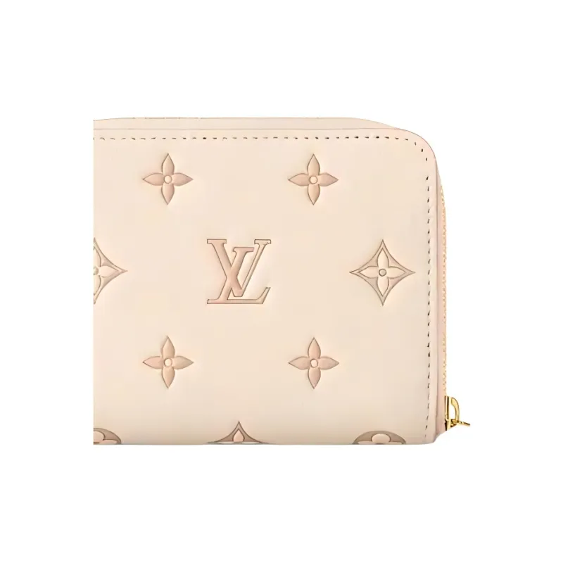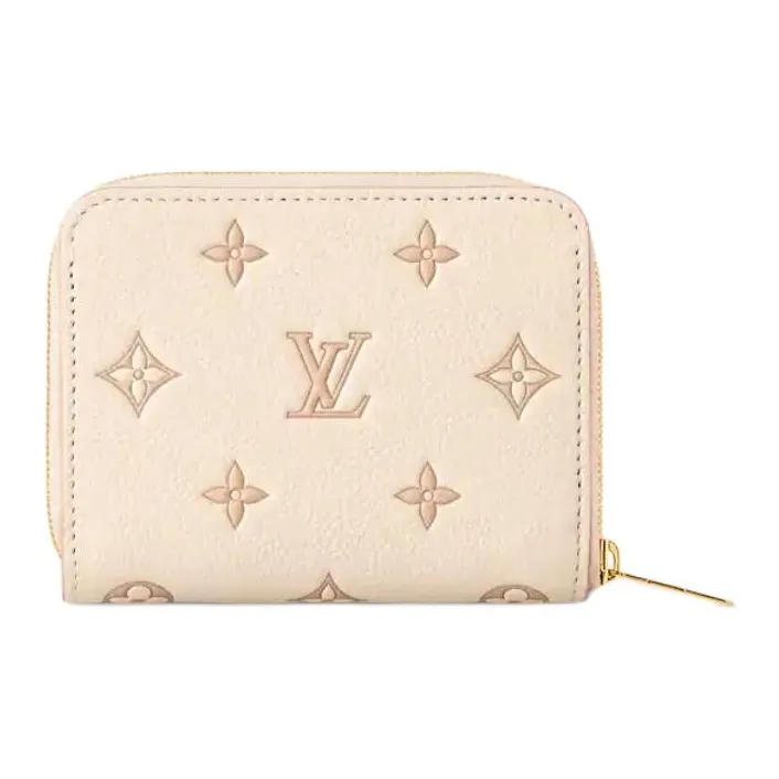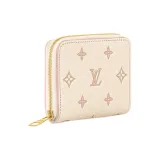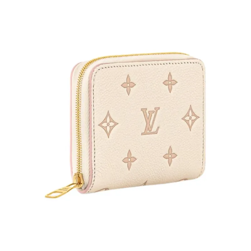 LOUIS VUITTON Zippy Тисненая крупнозернистая текстура кожи коровы Кошелек Мини Женский Телесный Розовый