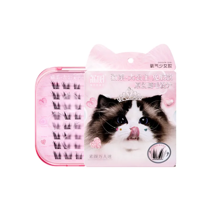 Личи деревья Новинка Кошка Тема Принцесса Клей Бесплатно Накладные ресницы Натуральный Увеличивающий Стиль 48 кластеров коробка