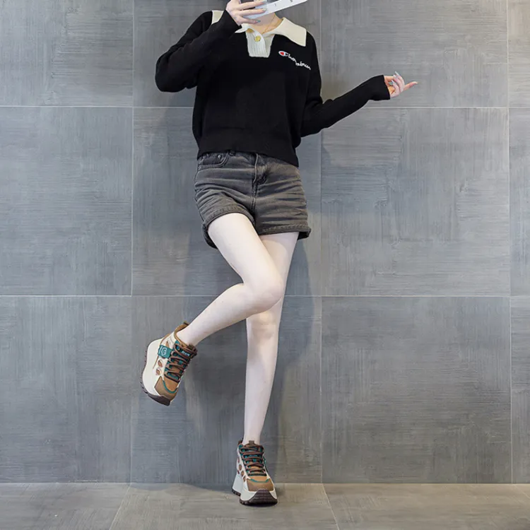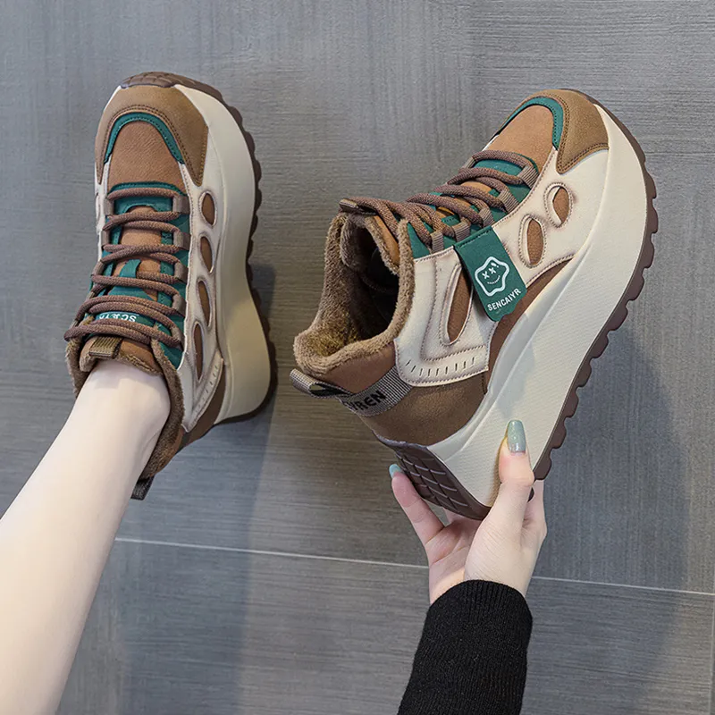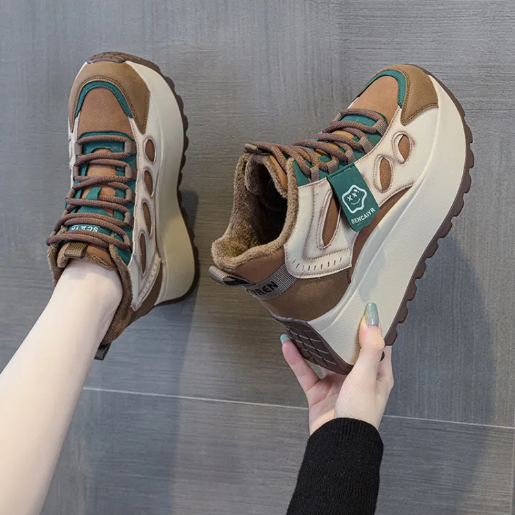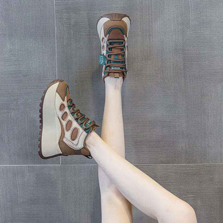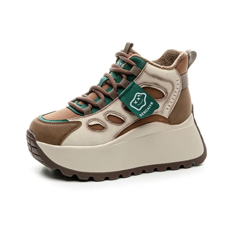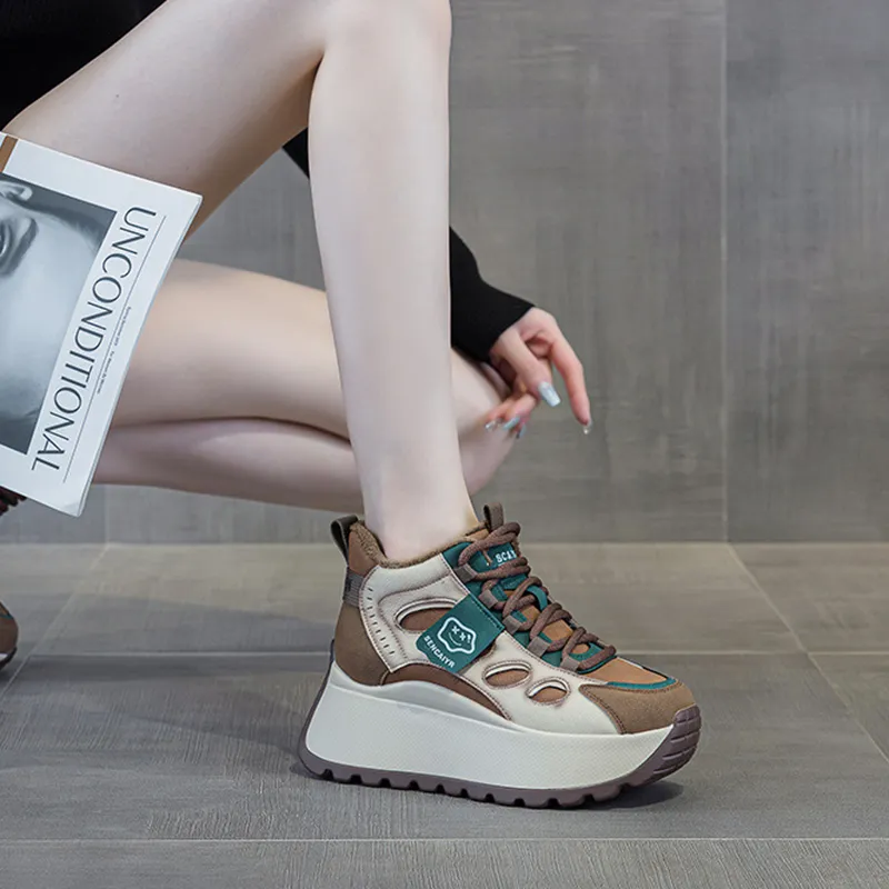 MABEL CO Высокий топ толстая подошва кроссовки женские зеленый