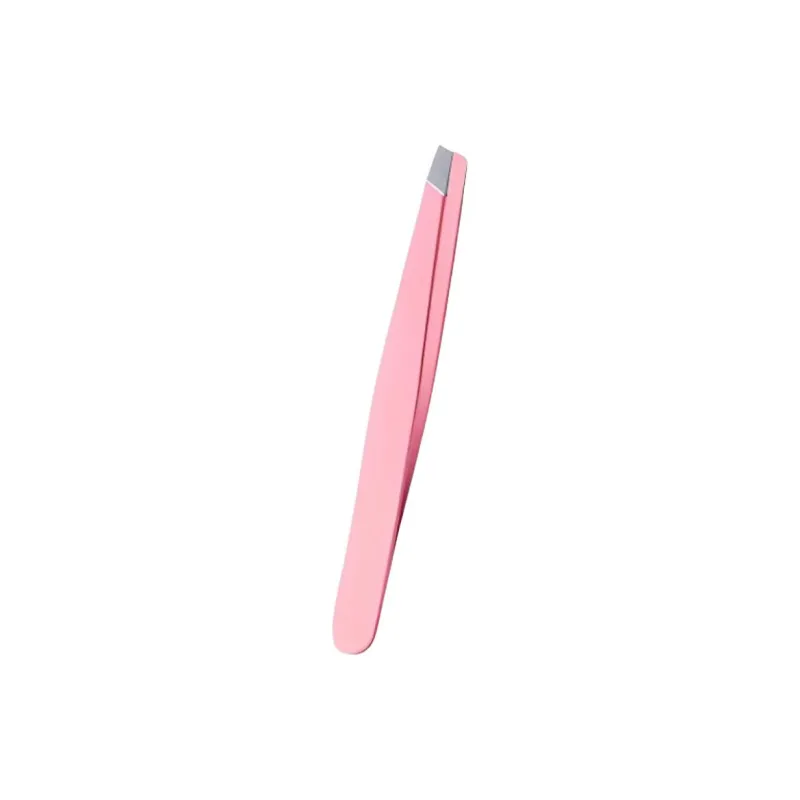 Нержавеющие стальные пинцет для бровей - розовый, плоская подошва, кончик