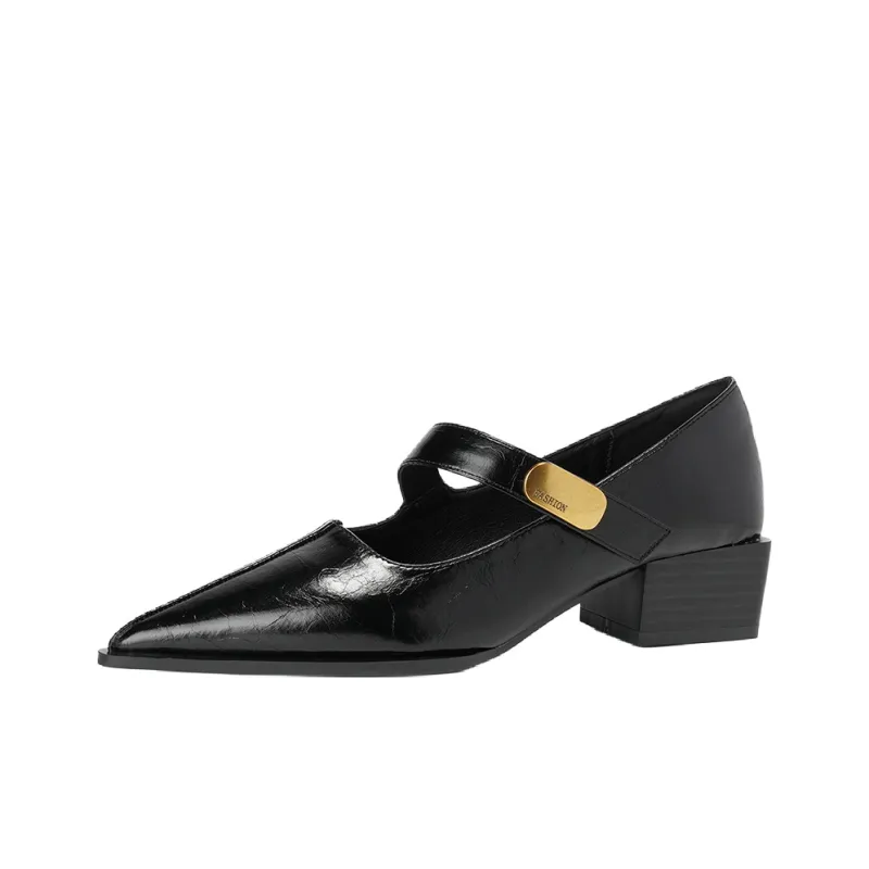 MADALLO Квадратный каблук Mary Jane обувь 4CM Женская Черная