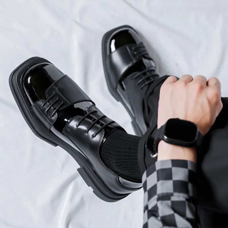 MADALLO Британские универсальные кожаные туфли с квадратным носом для бизнеса мужские повседневные броги черные мужские