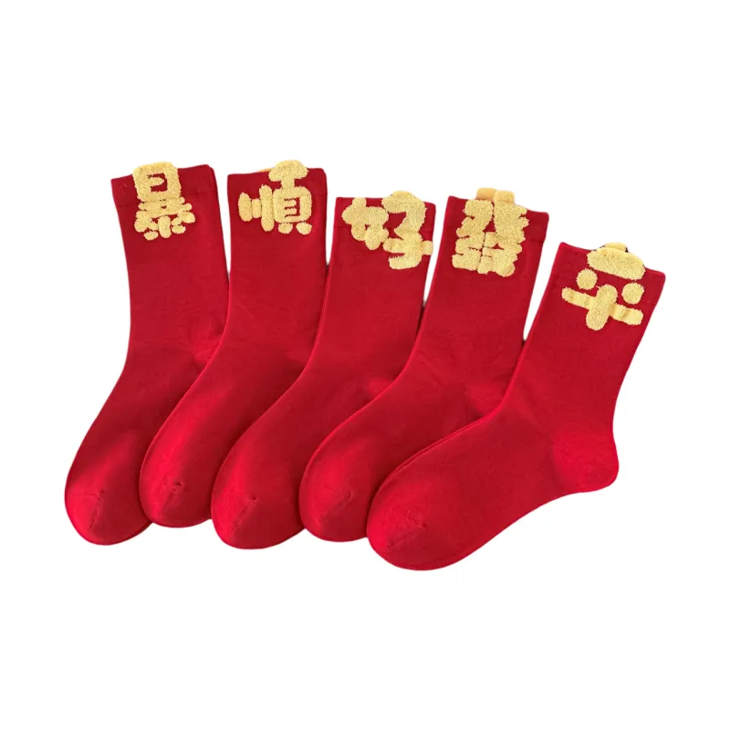MADALLO [5 пар] Мгновенное богатство + Гладкий Удача + Удачи + Процветание + Мирный Женские носки MID до икры