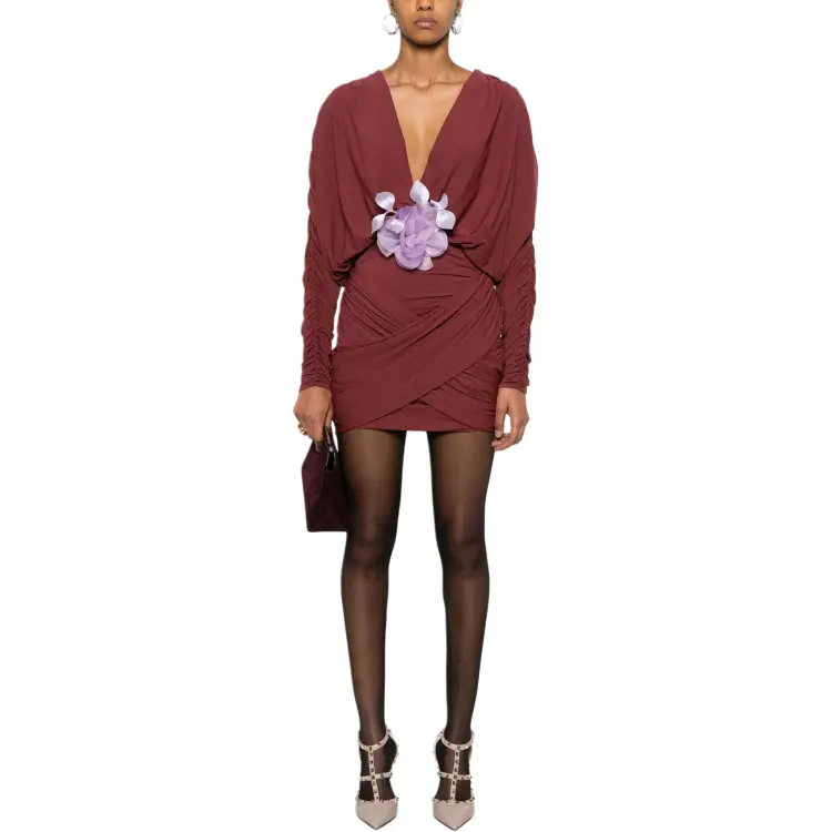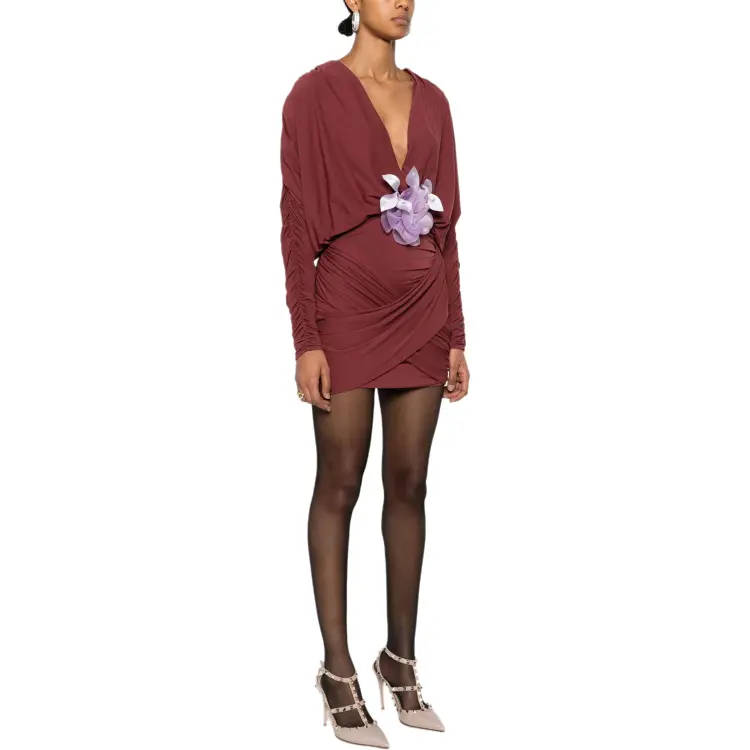 MAGDA BUTRYM FW24 Длинное платье с длинным рукавом женское бордовый