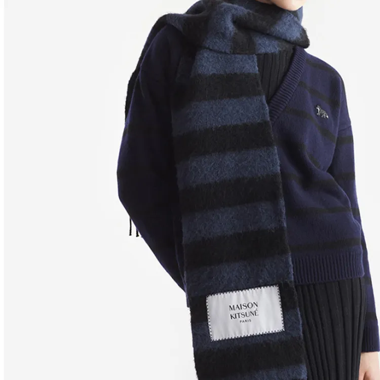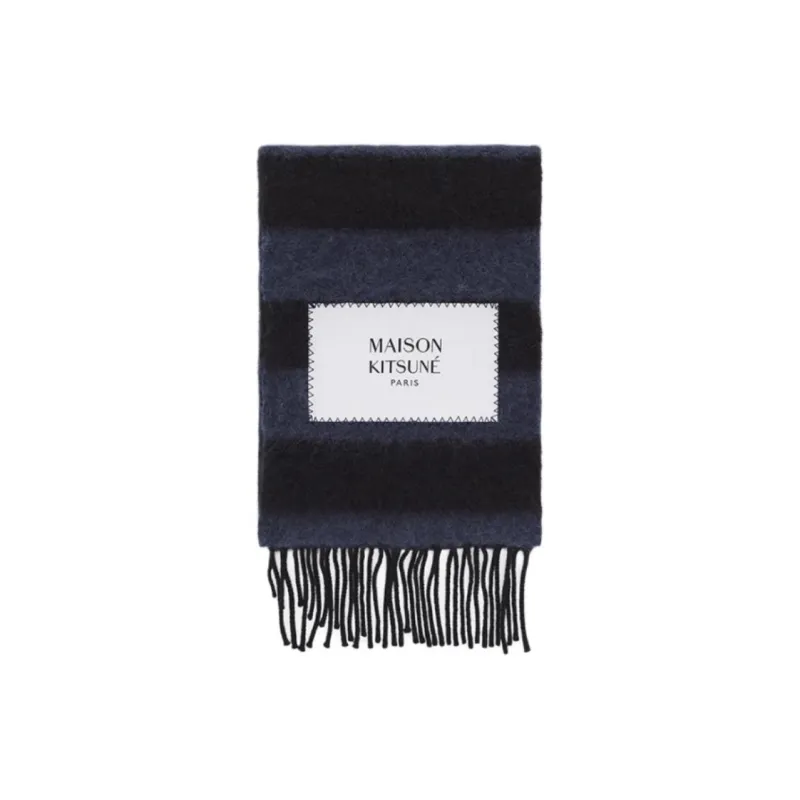 Maison Kitsune Альпака Овечья шерсть Полиамид Унисекс Шарфы из трикотажа Синий Черный