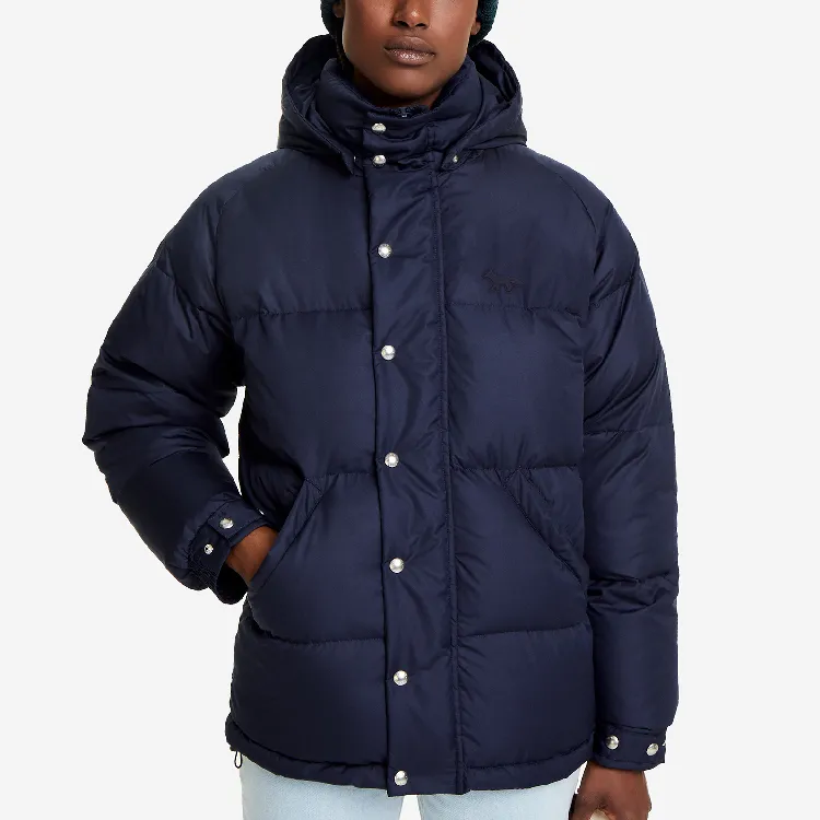 Maison Kitsune FW21 Однотонный С капюшоном Свободный крой Короткий пуховик Женский Темно-синий