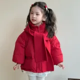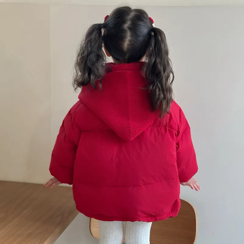 Цвет:Красный хлопковый пуховик с шапкой