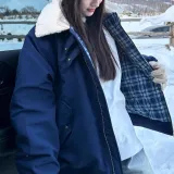 Синий [Двусторонний, Утеплённый], В наличии, Прямые волосы