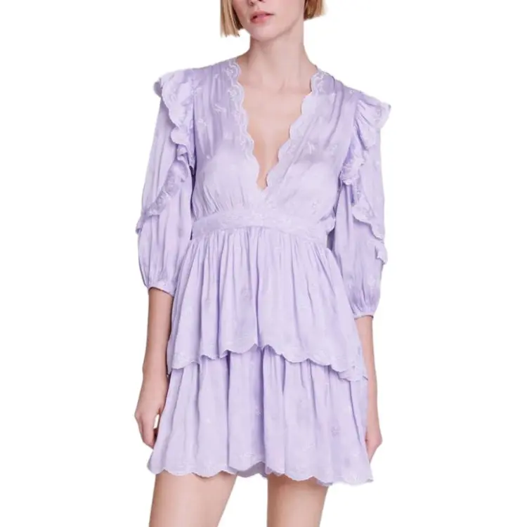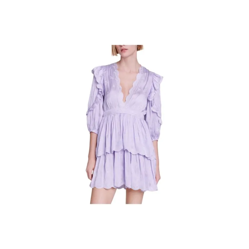 Maje Длинное платье с длинными рукавами женское светло-фиолетовое