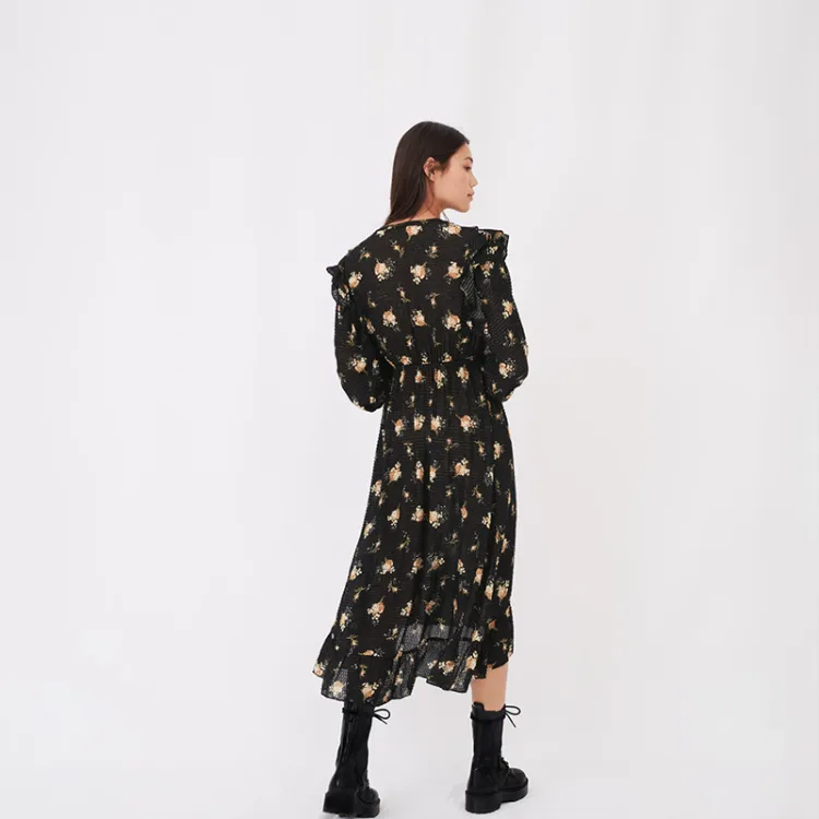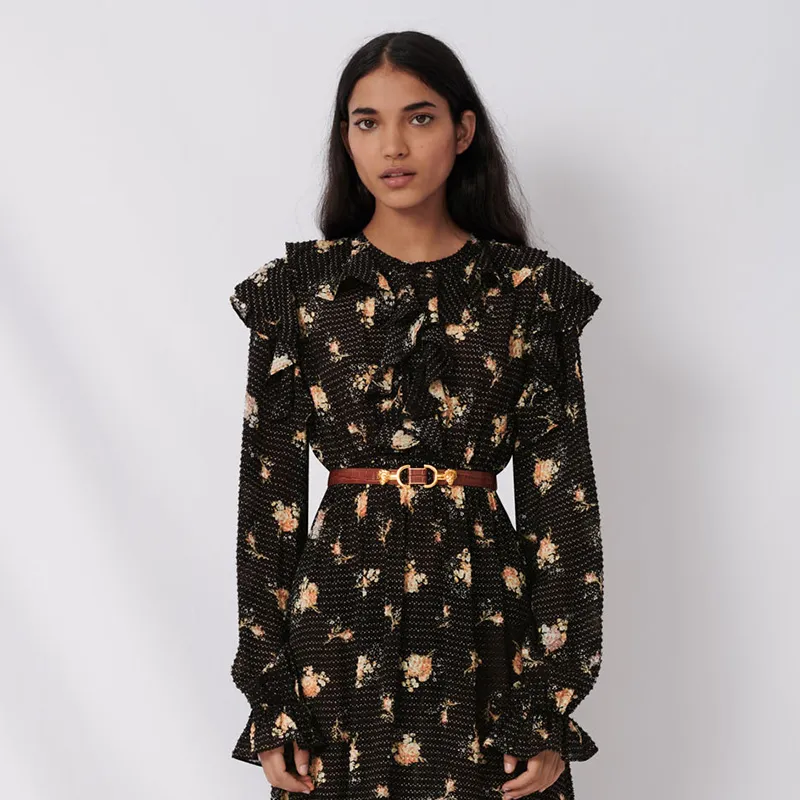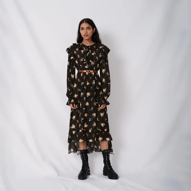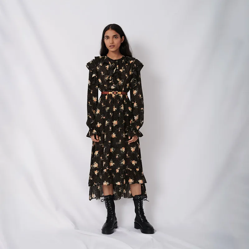 Maje Длинное платье с длинными рукавами женское черное