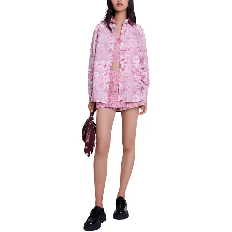 Maje Рубашка Женская Париж Розовый С принтом