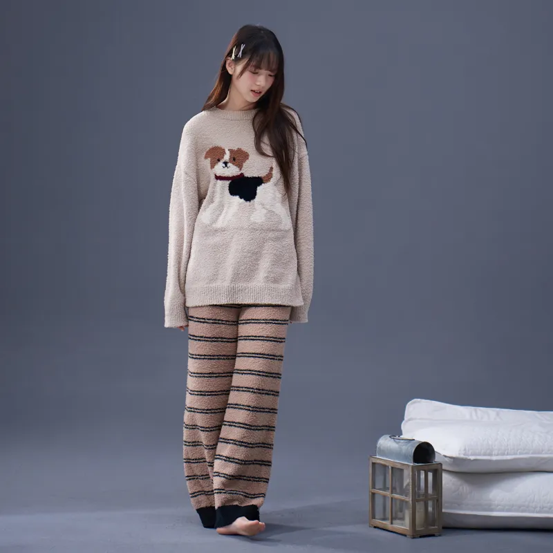 MAKEGONGZHU BBRSZ08 Щенок Топ + Полосы Женские Стиль Женские Пижамные Комплекты