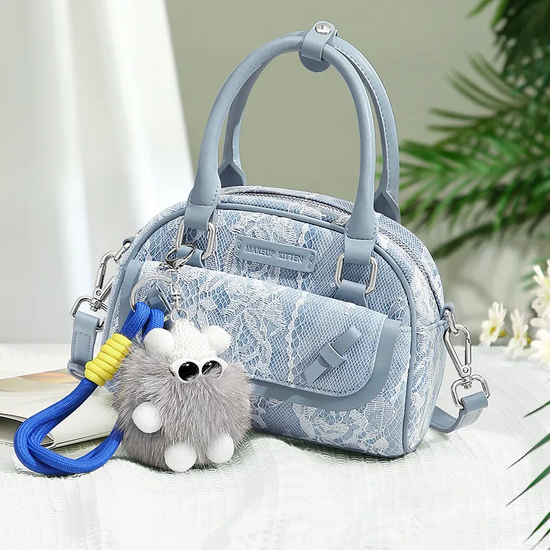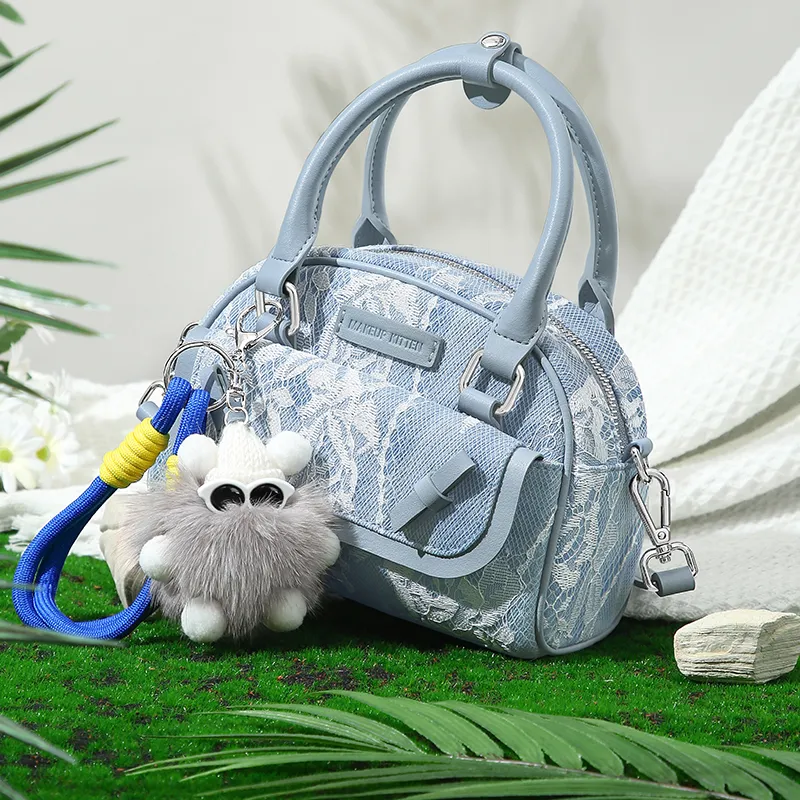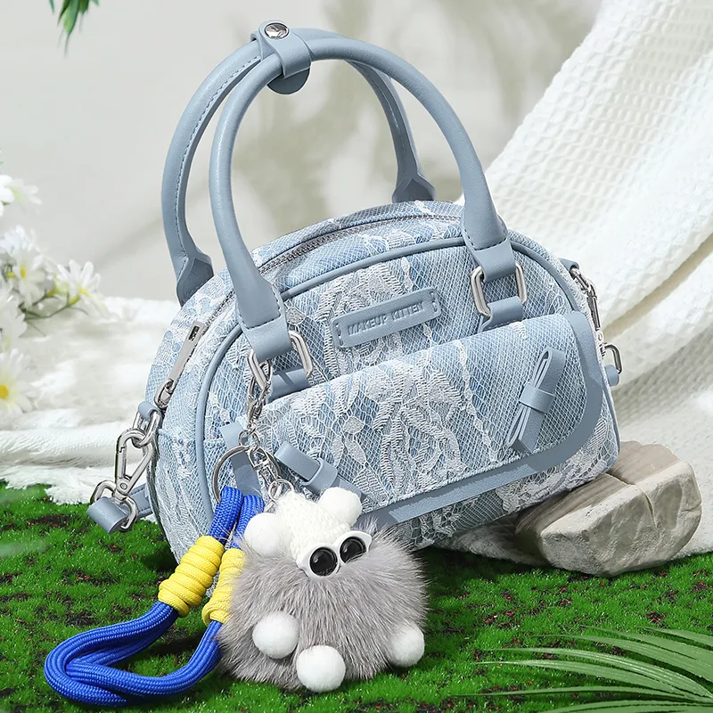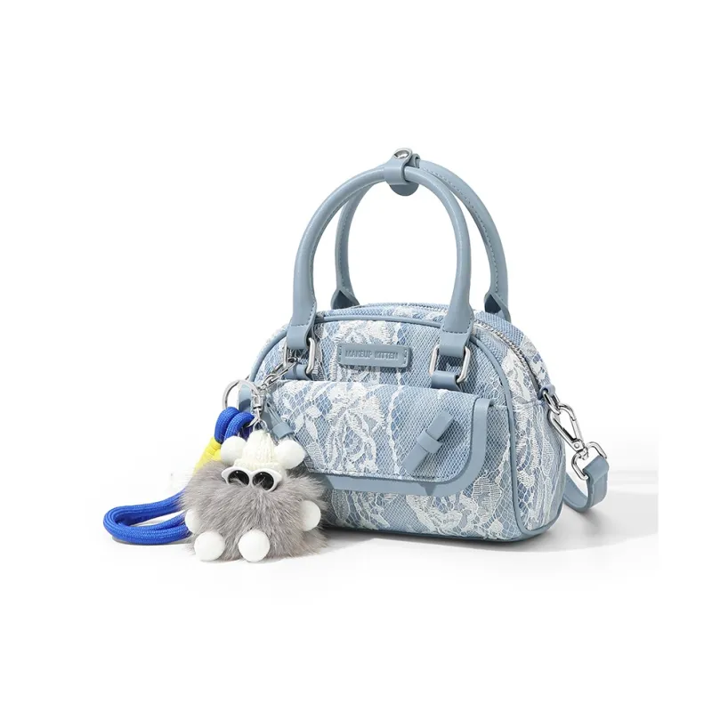 MAKEUP KITTEN Ткань Синтетическая кожа Сумка на одно плечо Женская Кружево Джинсовый синий