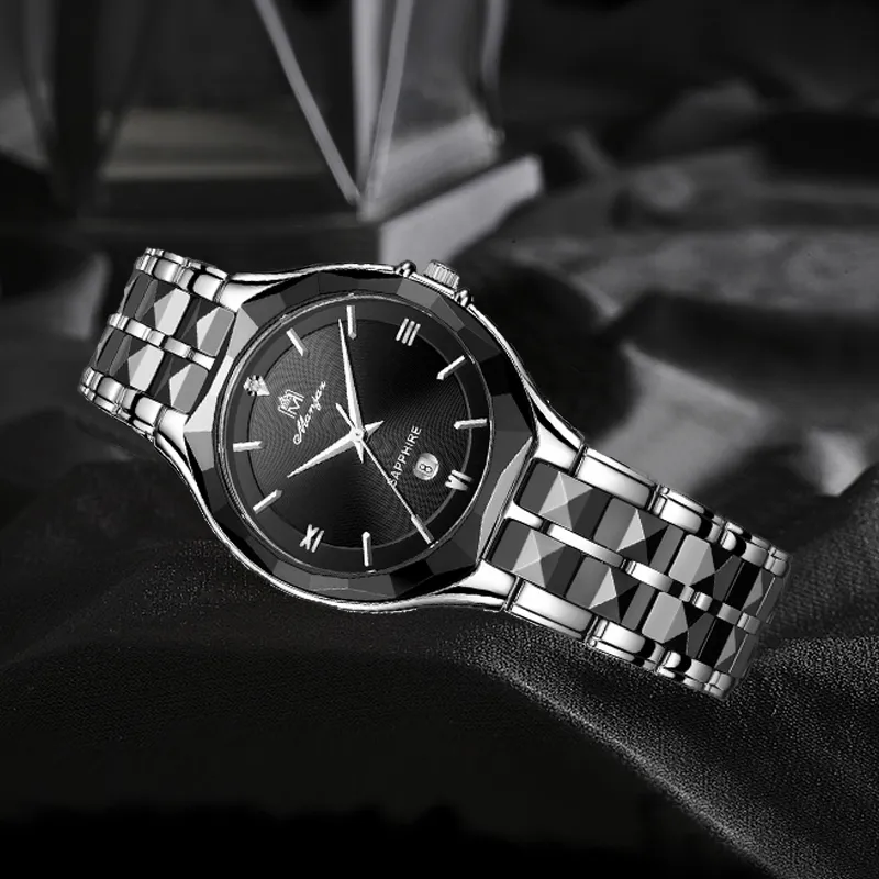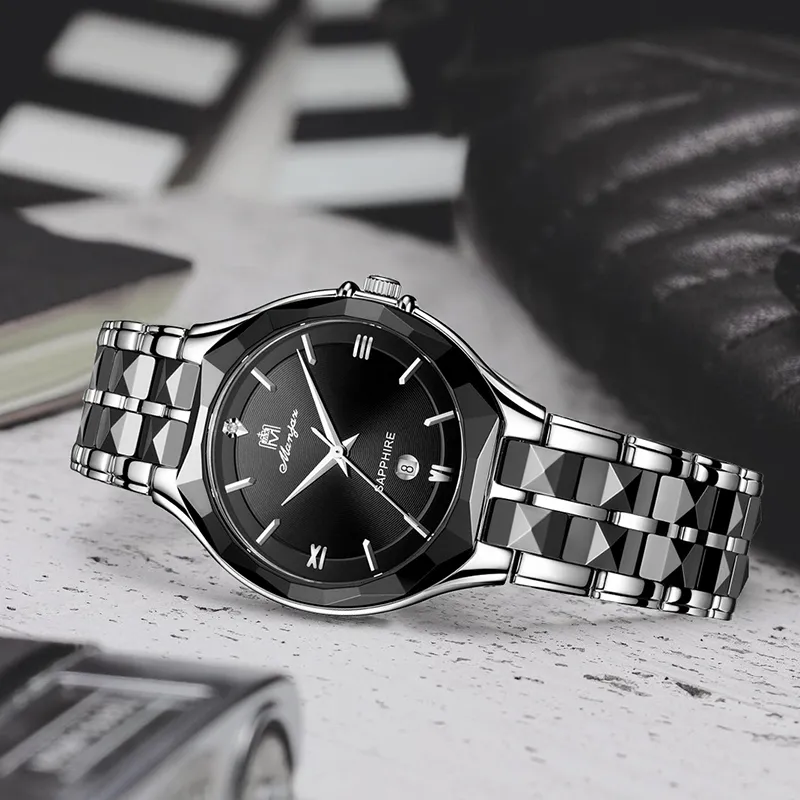 MANJAZ Кварцевый механизм Часы Мужские Черный циферблат
