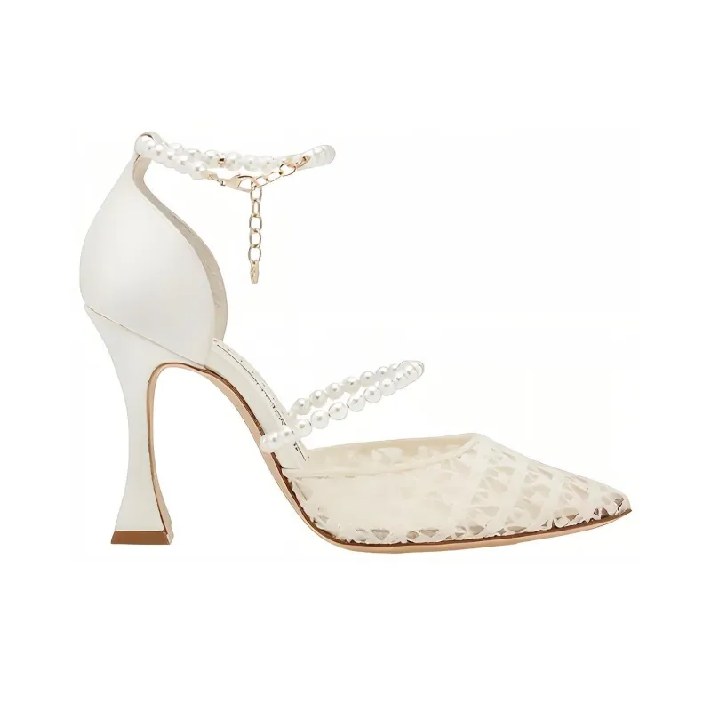 MANOLO BLAHNIK Нестандартный каблук Высокие каблуки 10,5 см Женские Слоновая кость