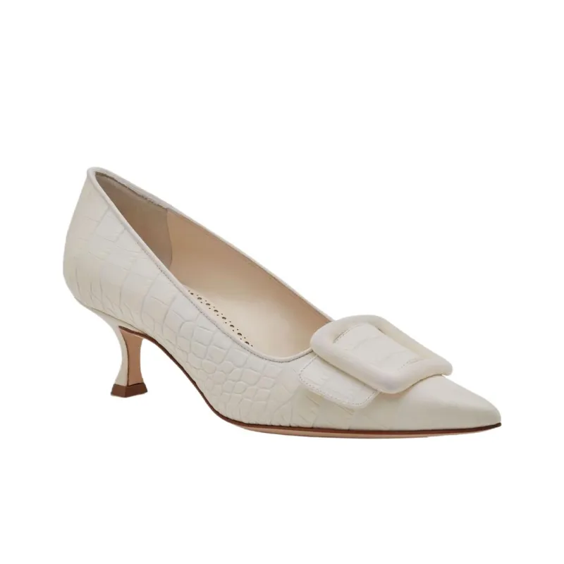 MANOLO BLAHNIK Maysalepump Узкий каблук Высокие каблуки 5 см Женские Кремово-белый