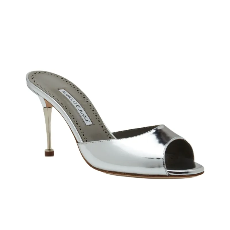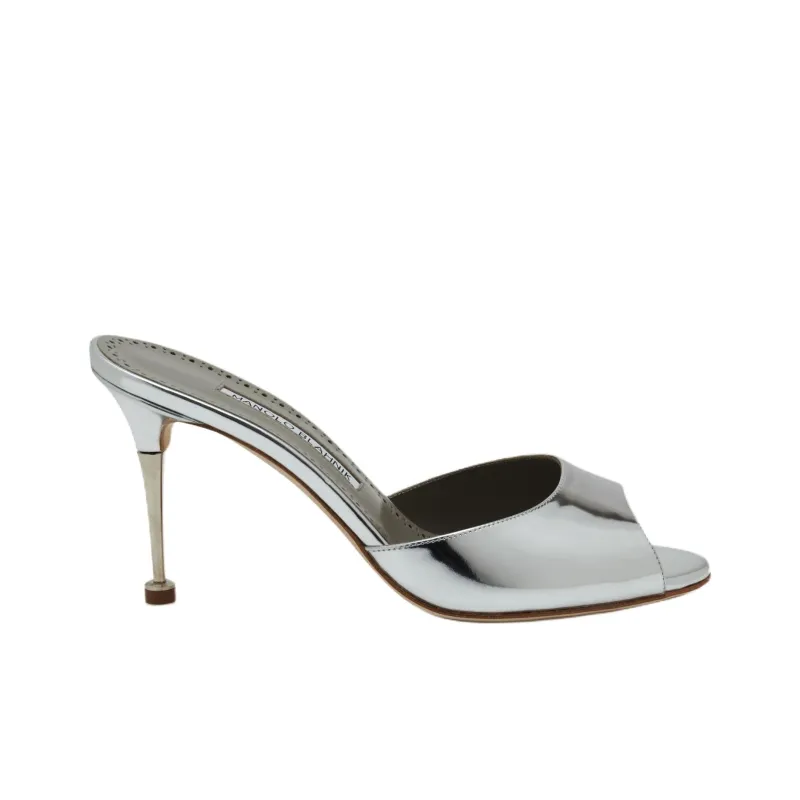 MANOLO BLAHNIK Шлепанцы 9 см Женские Серебряные