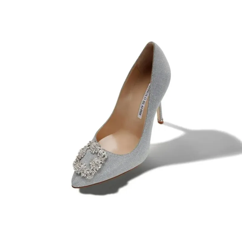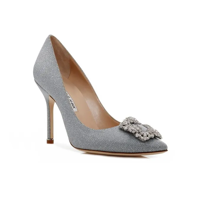 MANOLO BLAHNIK Узкий каблук Высокие каблуки 10,5 см Женские Серебряный