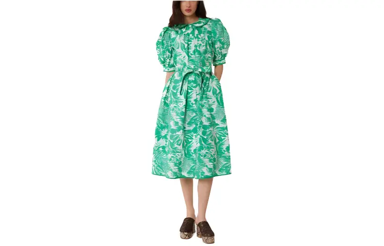 MANOUSH Короткий рукав Платье Женское Зеленое